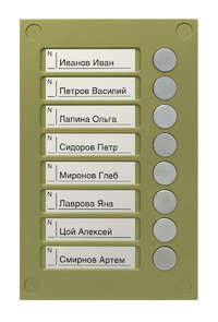 Кнопочная панель используется в комплекте с блоком вызова БВД-424FCB-1 Количество кнопок для вызова абонентов-8. Накладной монтаж. Рекомендуется использовать совместно с монтажным комплектом МК-424х, МКF-424х.